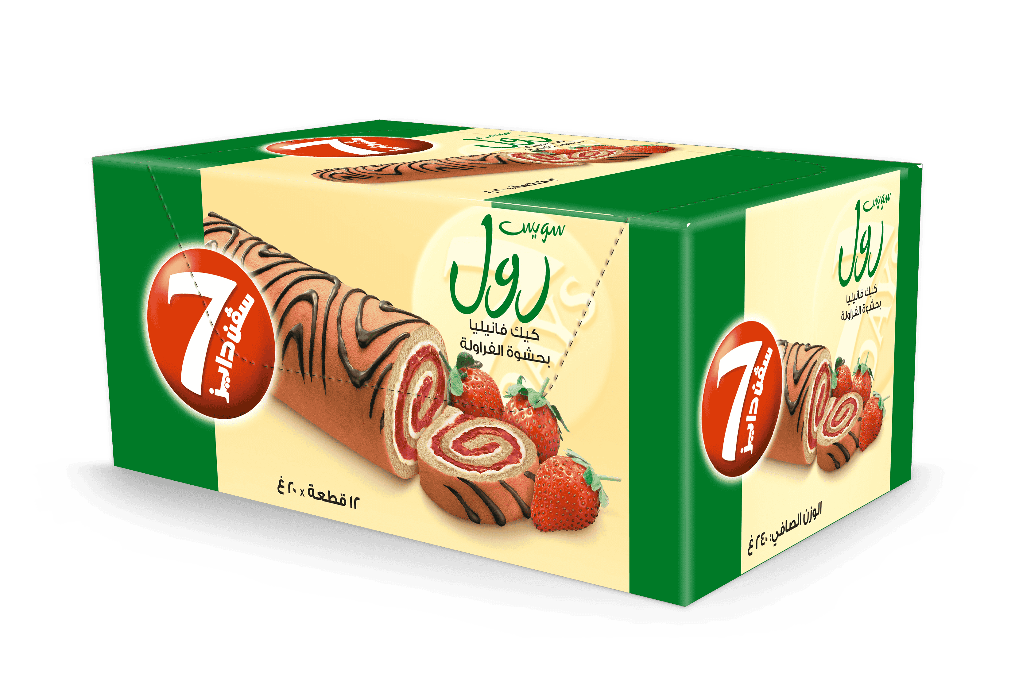 ميني سويس رول الفراولة، من سفن دايز، حلوى خفيفة ولذيذة غنية بالطعم الذي تجده شهي مع حشوة الفراولة، مما يجعله خيارك الانسب من الحلويات.