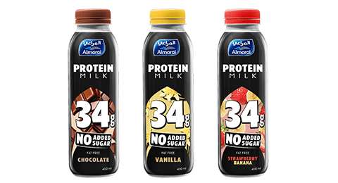 High protein milk, made from 100% fresh skimmed cow's milk, provides optimum protein supplementation, as it is fortified with the highest levels of protein of 34g per bottle, it is fat-free, and supports your active lifestyle.